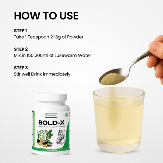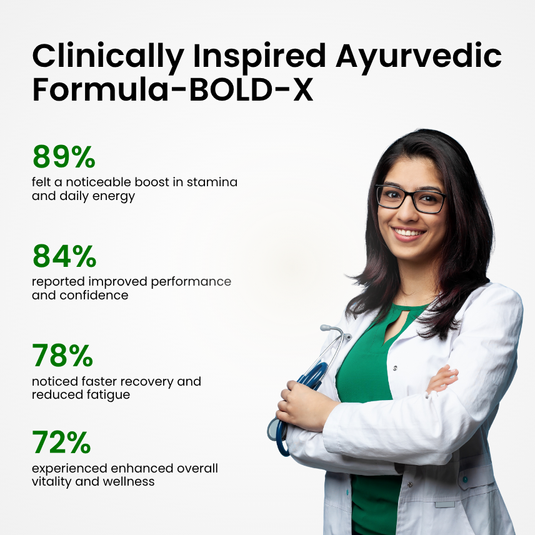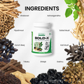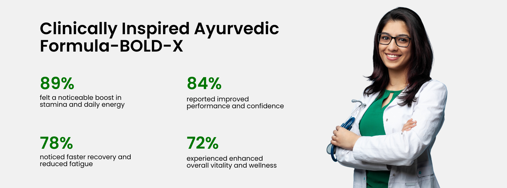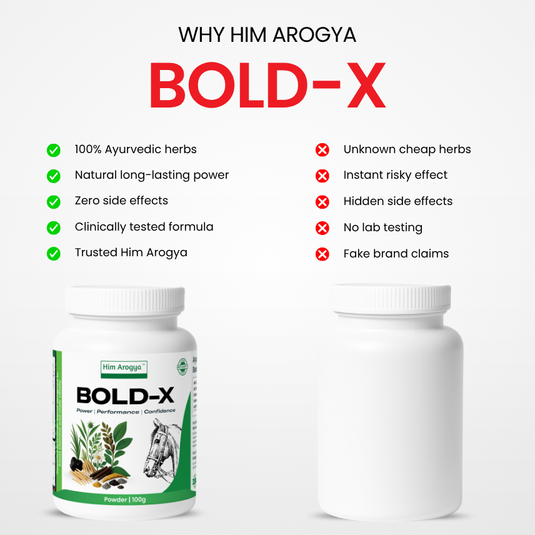 Bold-X में शामिल हैं – कौंच बीज, अश्वगंधा, सफेद मूसली, गोक्षुर, अकरकरा, जायफल, जावित्री, विदारीकंद, इलायची और क्रिस्टल शुगर। सभी हर्ब्स शुद्ध और पारंपरिक रूप से इस्तेमाल किए जाते हैं।