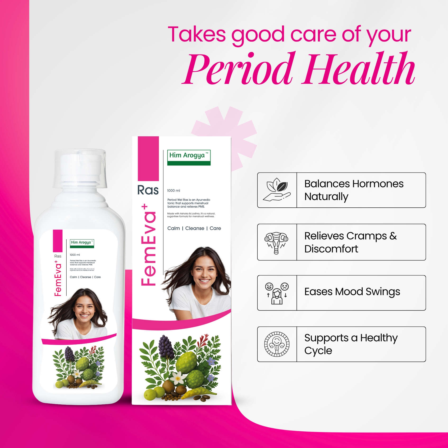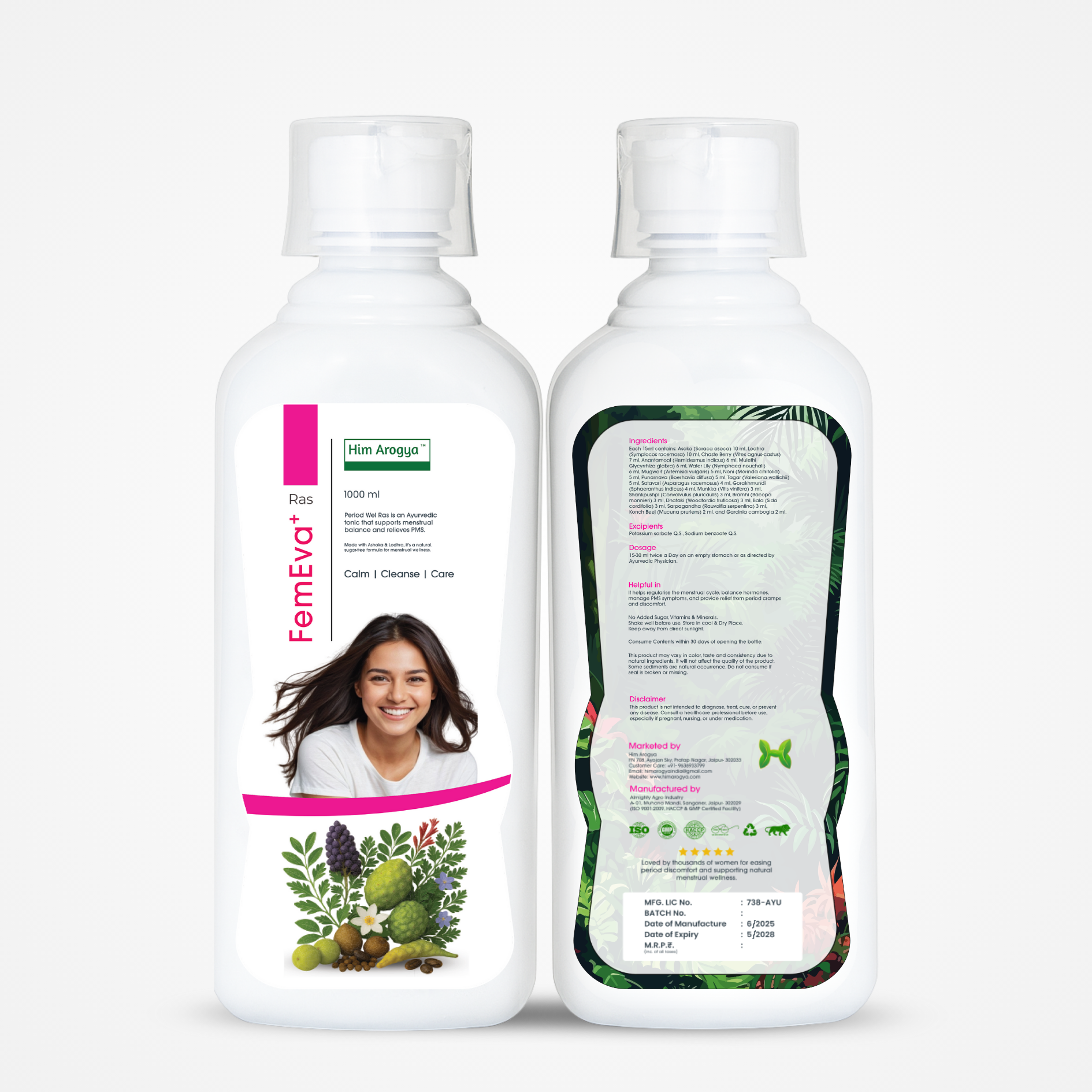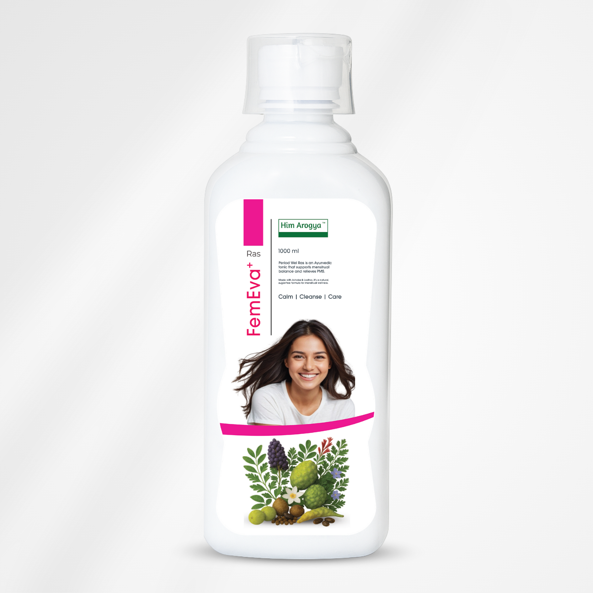 FemEva Rus is an Ayurvedic tonic designed to balance female hormones, ease menstrual discomfort, and support overall reproductive wellness.