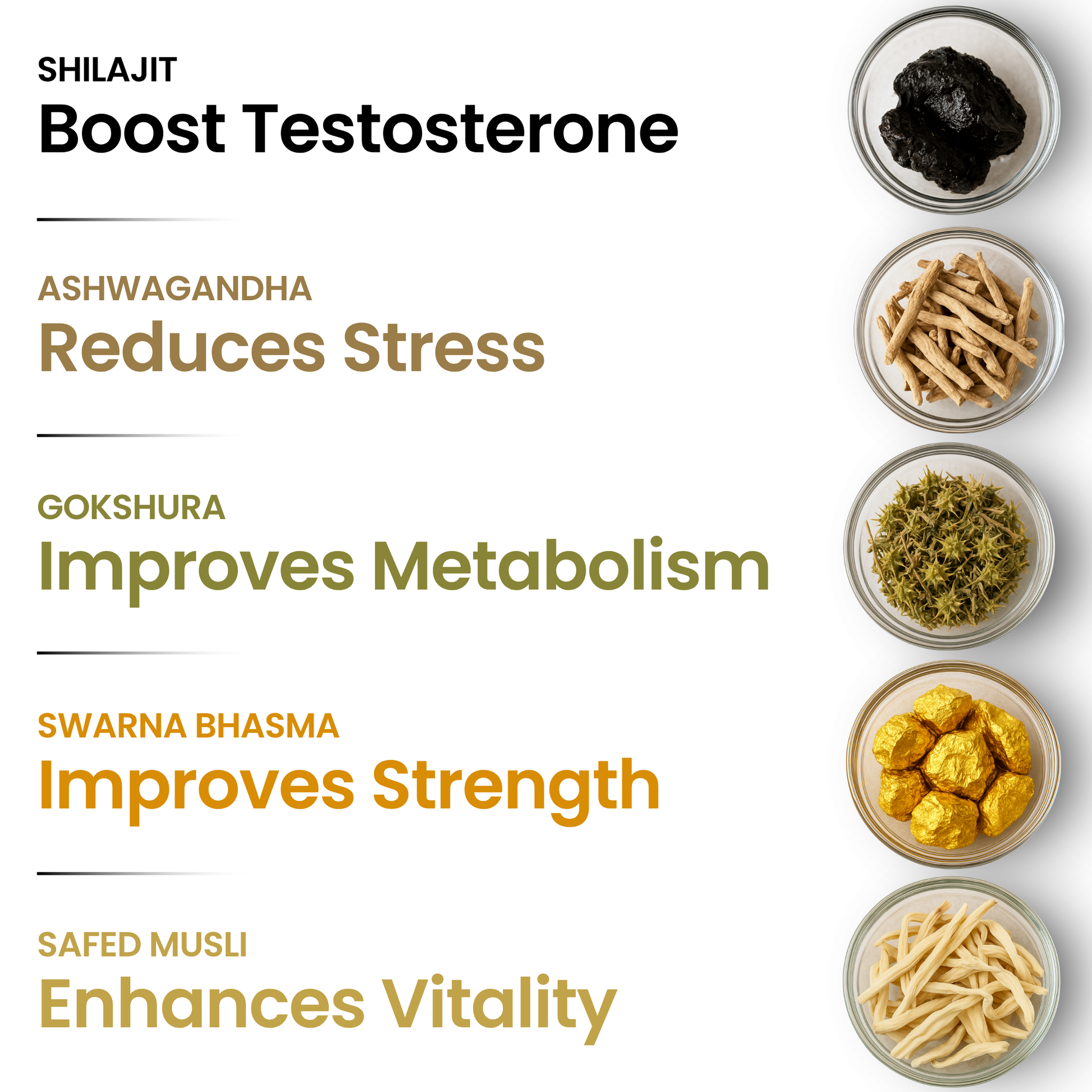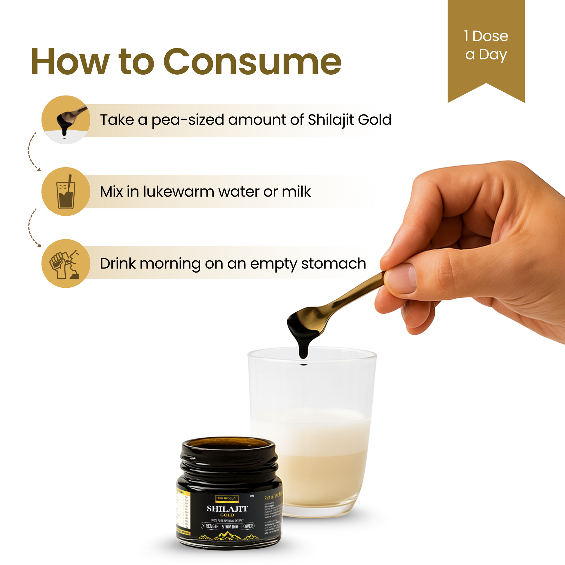 Unlike regular Shilajit, our Shilajit Gold is fortified with additional Ayurvedic ingredients for enhanced results. It provides not just energy but also improves performance, testosterone levels, and stress management.